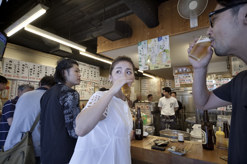 こうしてカウンターで肩寄せ合って立ち飲みしてると、他のお客さんと不思議な一体感があるんだけど、「どうだ、私は赤星いっちゃてるぞ、いいでしょ」と、ちょっとした優越感を味わえます(笑)。