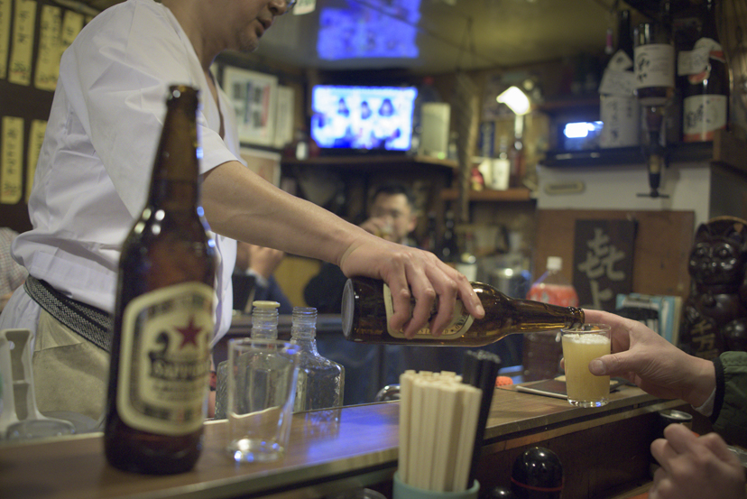 見ていると、最初の1杯が瓶ビールという人が実に多い。つまり、赤星の愛飲者たちなのだ。みなさん、そこから始めて、キンミヤの300mlボトルに移り、ホッピーとかレモンソーダとかで割る。そういう方向へいく。もちろん燗酒の人たちもいる。